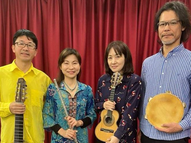 Flor de Juazeiro (フロール・ヂ・ジュアゼイロ)<NORDESTE> 9/28(日) 20:00〜20:45 バオバブ ●リコ(ヴォーカル)/ カルロス(ヴォーカル&トライアングル)/ マリーナ(ギター&カヴァキーニョ)/ みっちゃん(サンフォーナ)/ ちーちゃん(ザブンバ) ゲスト:三間大輔(パーカッション) |
